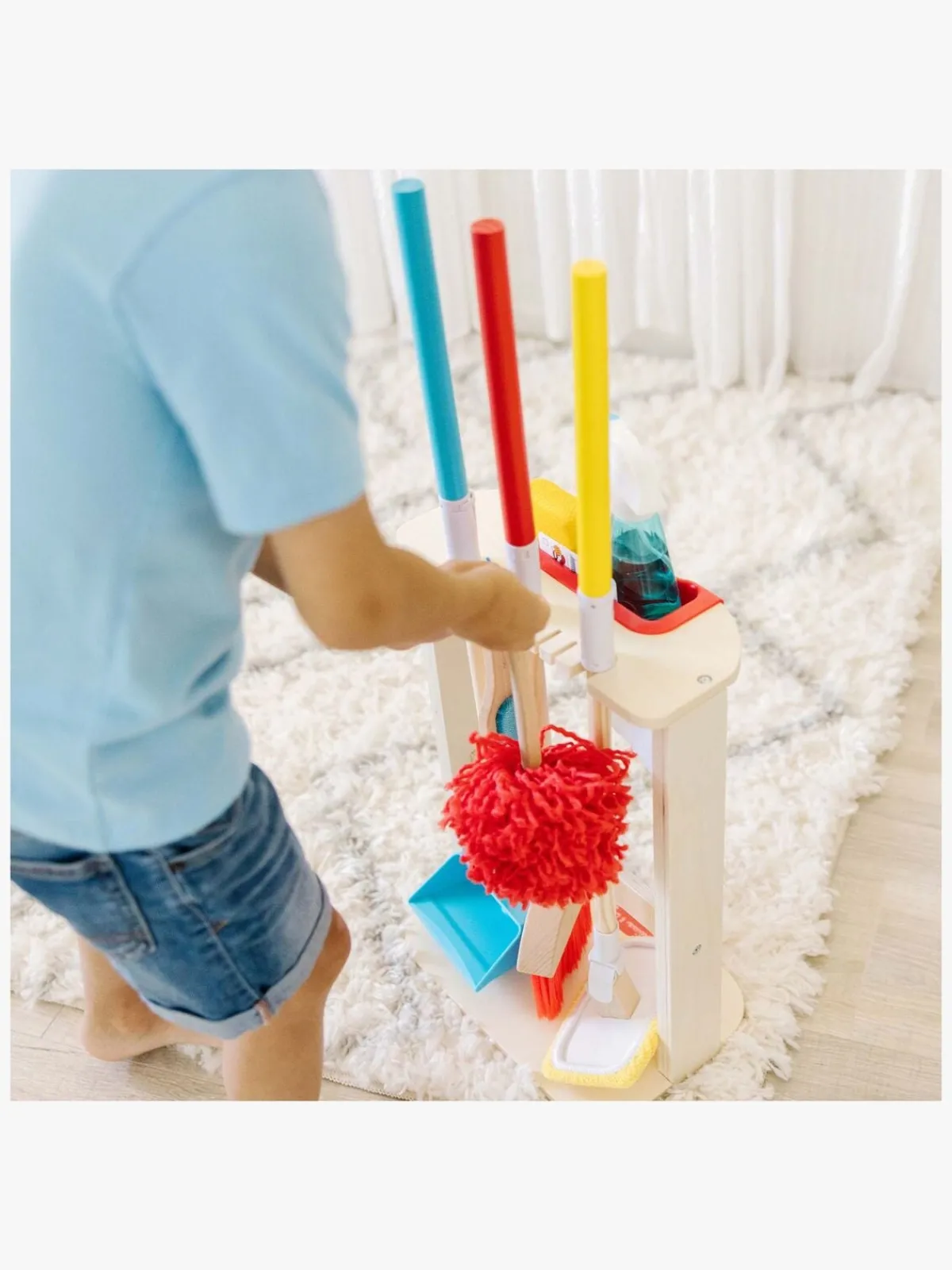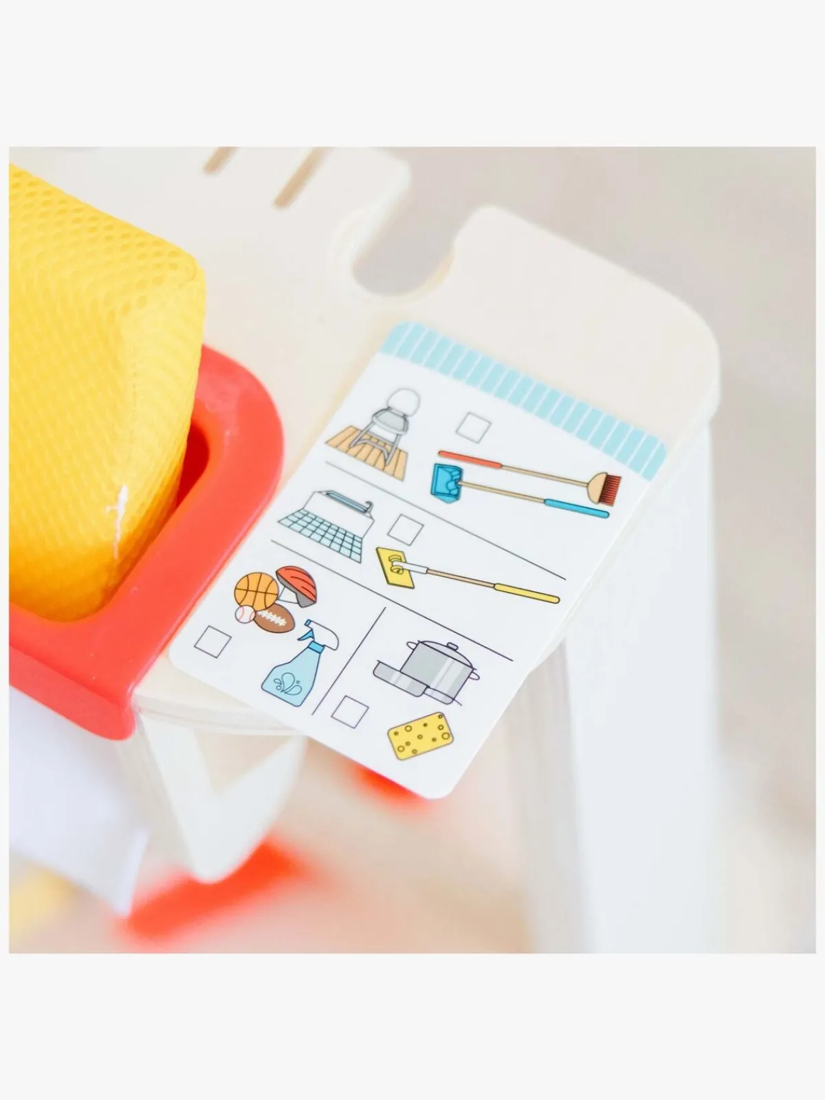 – Indeholder: 1 fejekost, 1 fejebakke, 2 mopper, 1 fnugbørste, 1 støvekost, 1 rengøringsstativ, 1 sprayflaske, 1 rengøringsklud, 1 aktivitetskort, 1 vaskesvamp.
