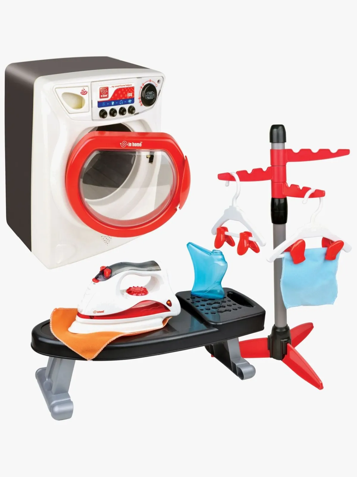 | Øvrige mål | Vaskemaskine: 18.5 x 16.5 x 25 cm Strygejern: 29 x 8 x 11 cm Strygebræt: 42 x 25 c 13. 5 cm Vand flaske: 8. 5 x 3 x 10 cm Lommetørklæde: 19 x 12 cm Tørrestativ: 18 x 11.5 x 0.5 cm & 26 x 26 x 47 cm Tøjklemmer: 4 x 3 x 3 cm |
