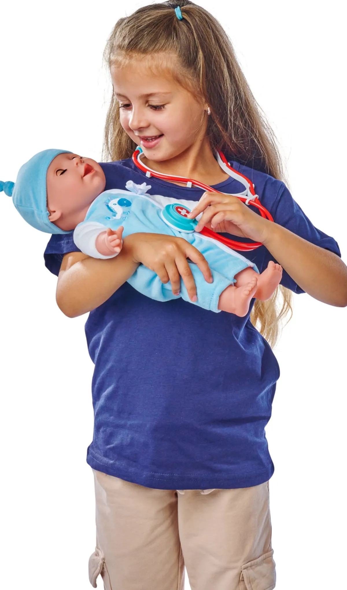 – Indeholder: sprøjte, stetoskop, termometer, reflekshammer, medicinbeholder og piller.