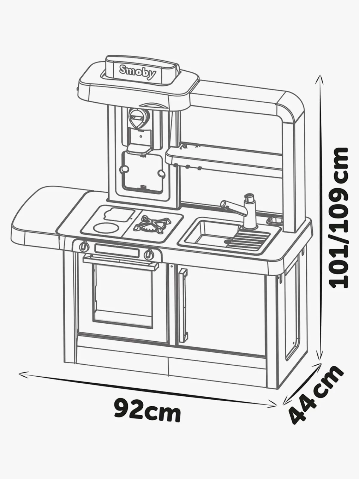 – Indeholder: 1 legekøkken, 1 opbevaringshylde, 1 kaffemaskine, 3 køkkenredskaber, 2 gafler, 2 knive, 2 skeer, 2 tallerkener, 2 glas, 2 kopper, 1 stegepande, 1 salt- og pebersæt, 1 gryde, 5 madvarer.