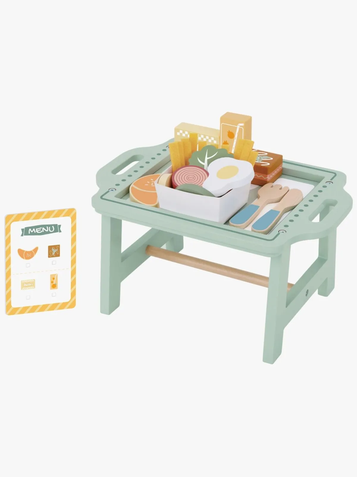– Indeholder: 1 bakke, 1 skål, 1 gaffel, 1 legetøjskniv, 1 menukort, 20 fødevarer.