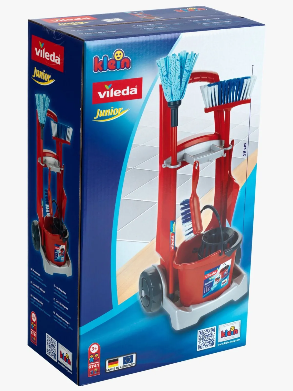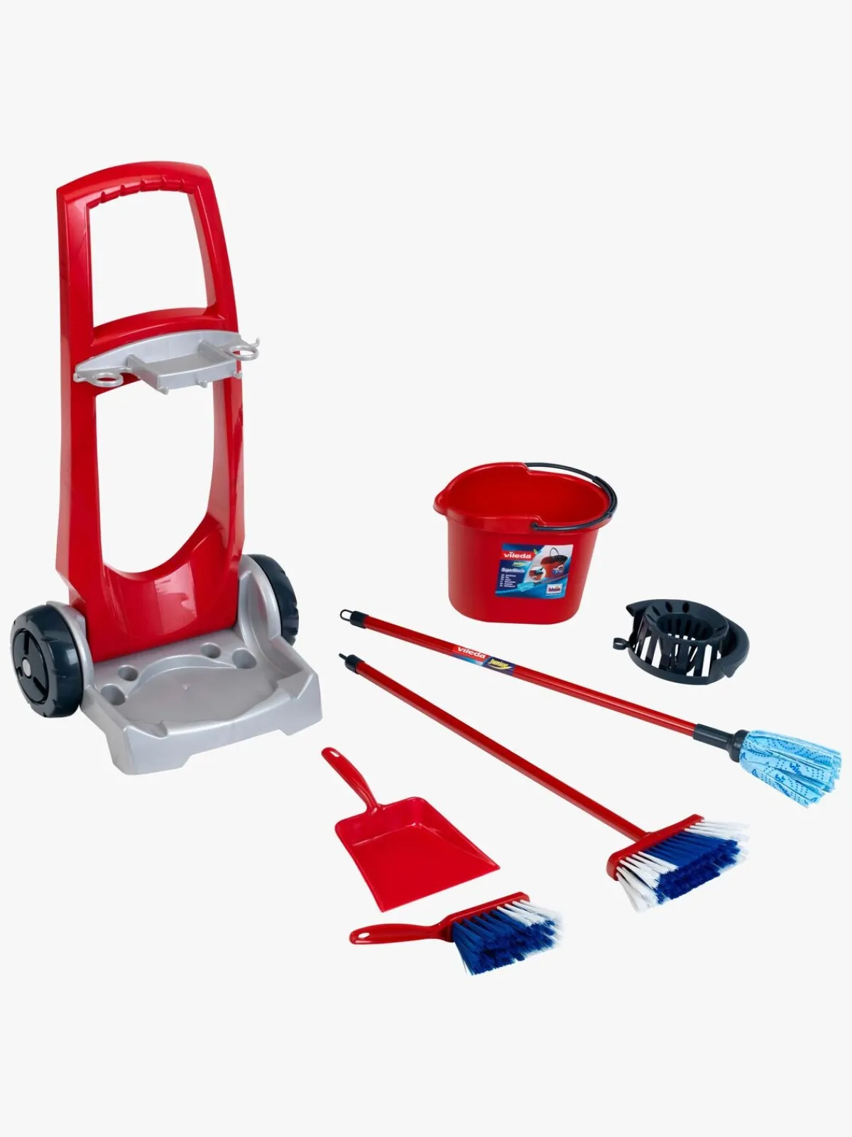 – Indeholder: 1 vogn, 1 spand, 1 moppe, 2 koste, 1 fejebakke.