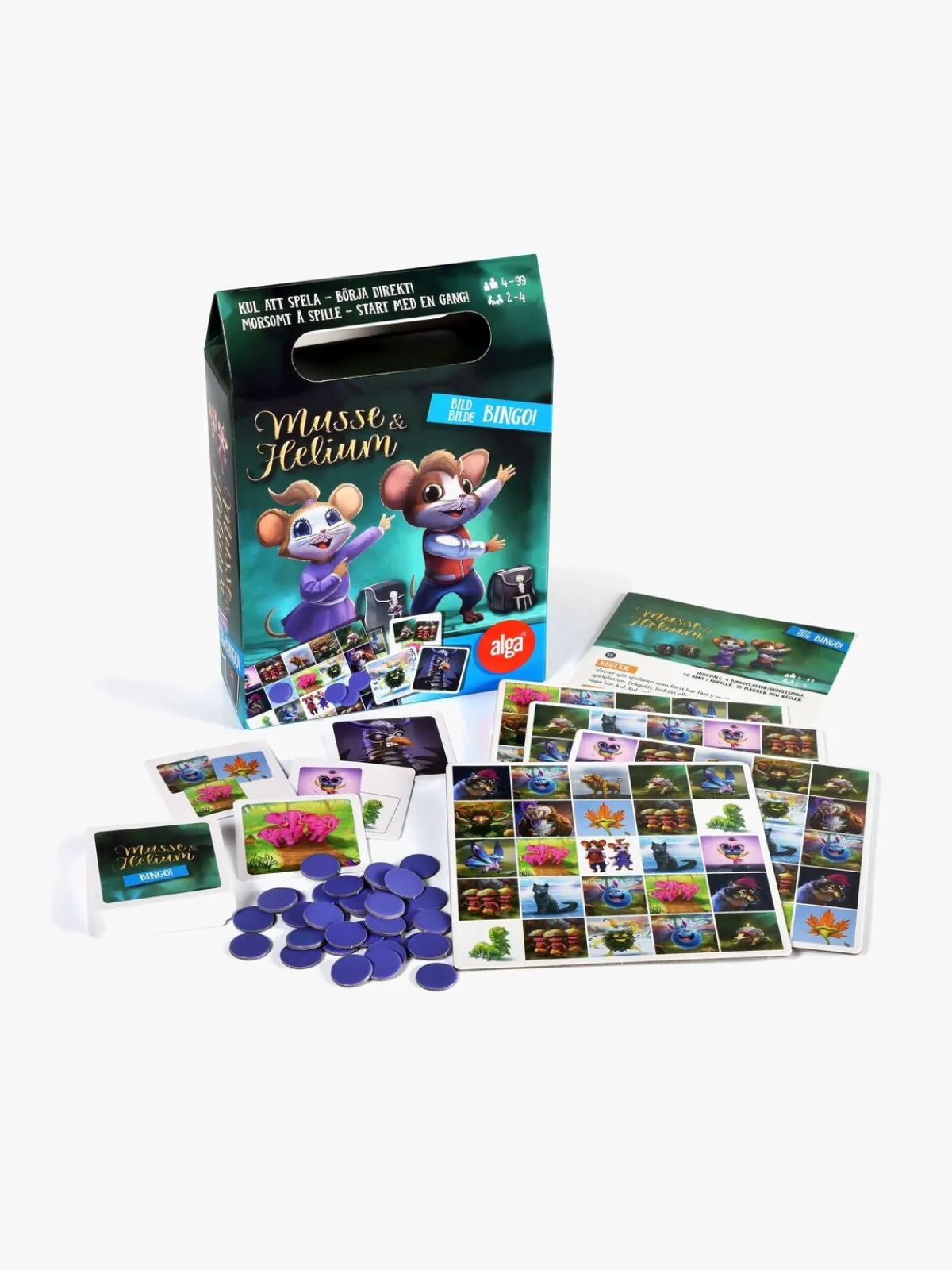 – Indeholder bingobrikker, kortspil, spillemønter og regler.