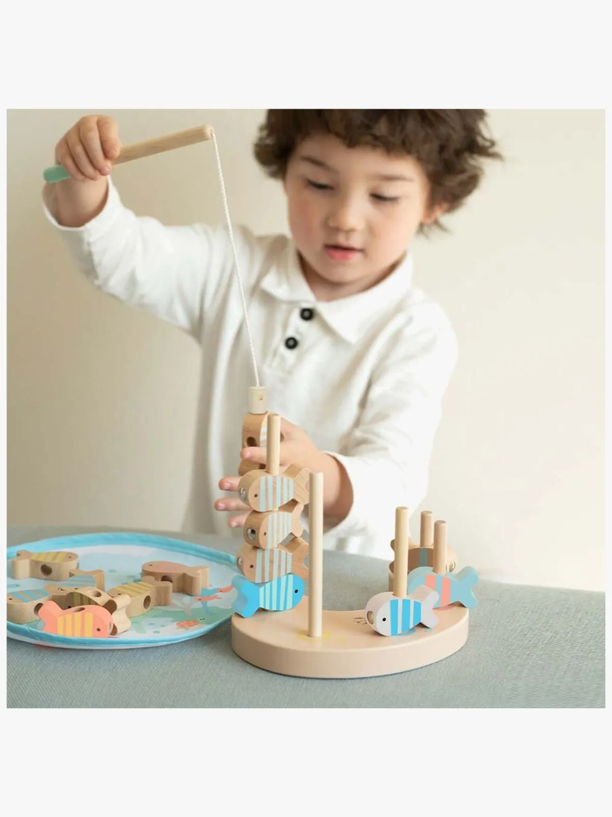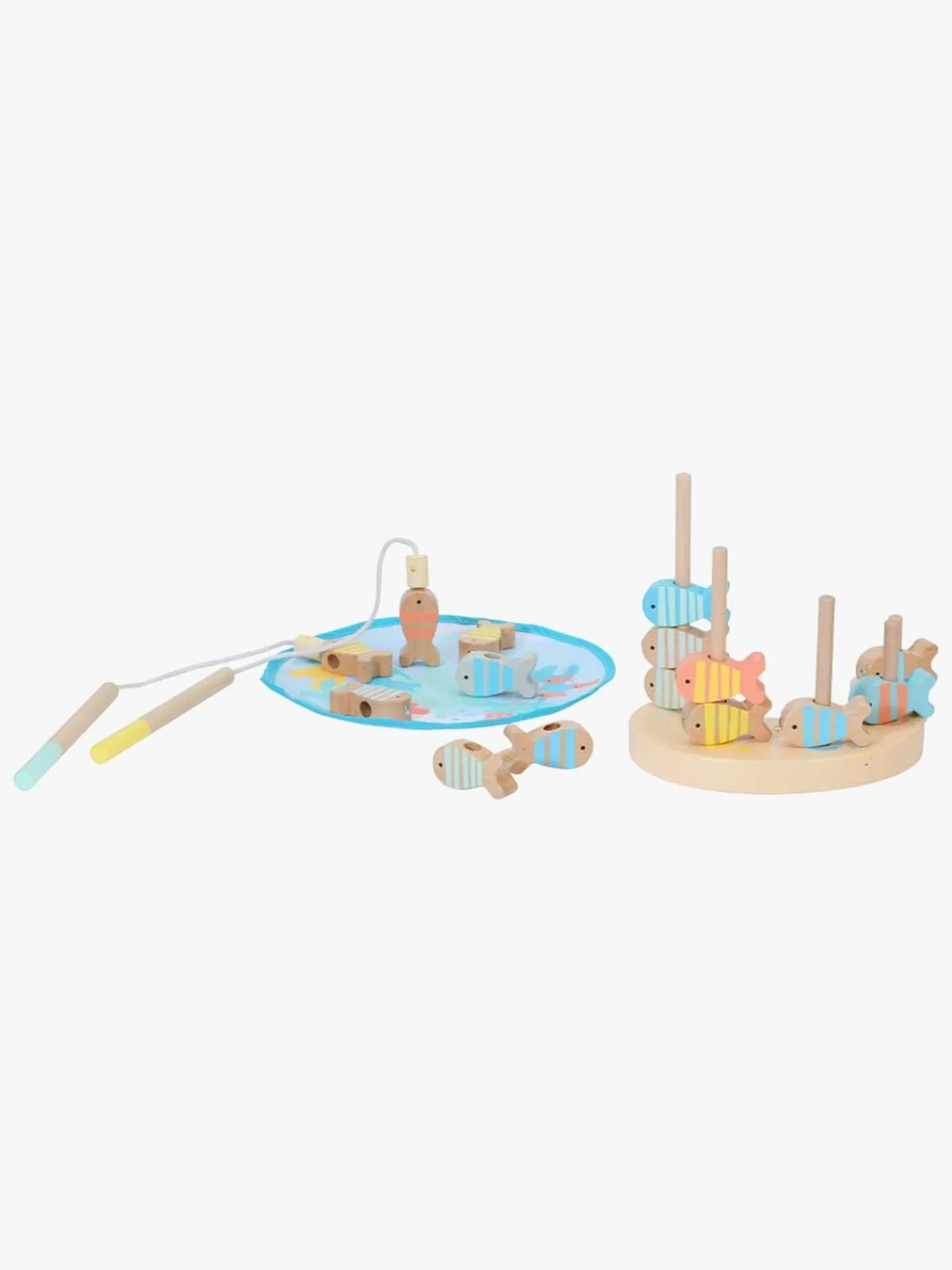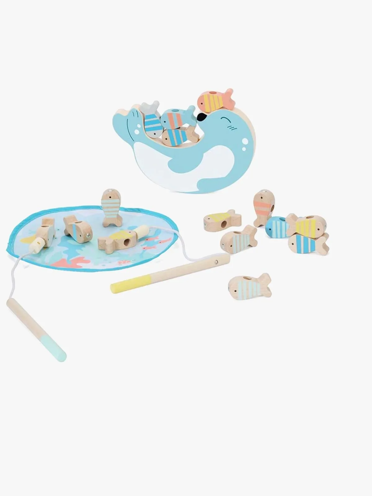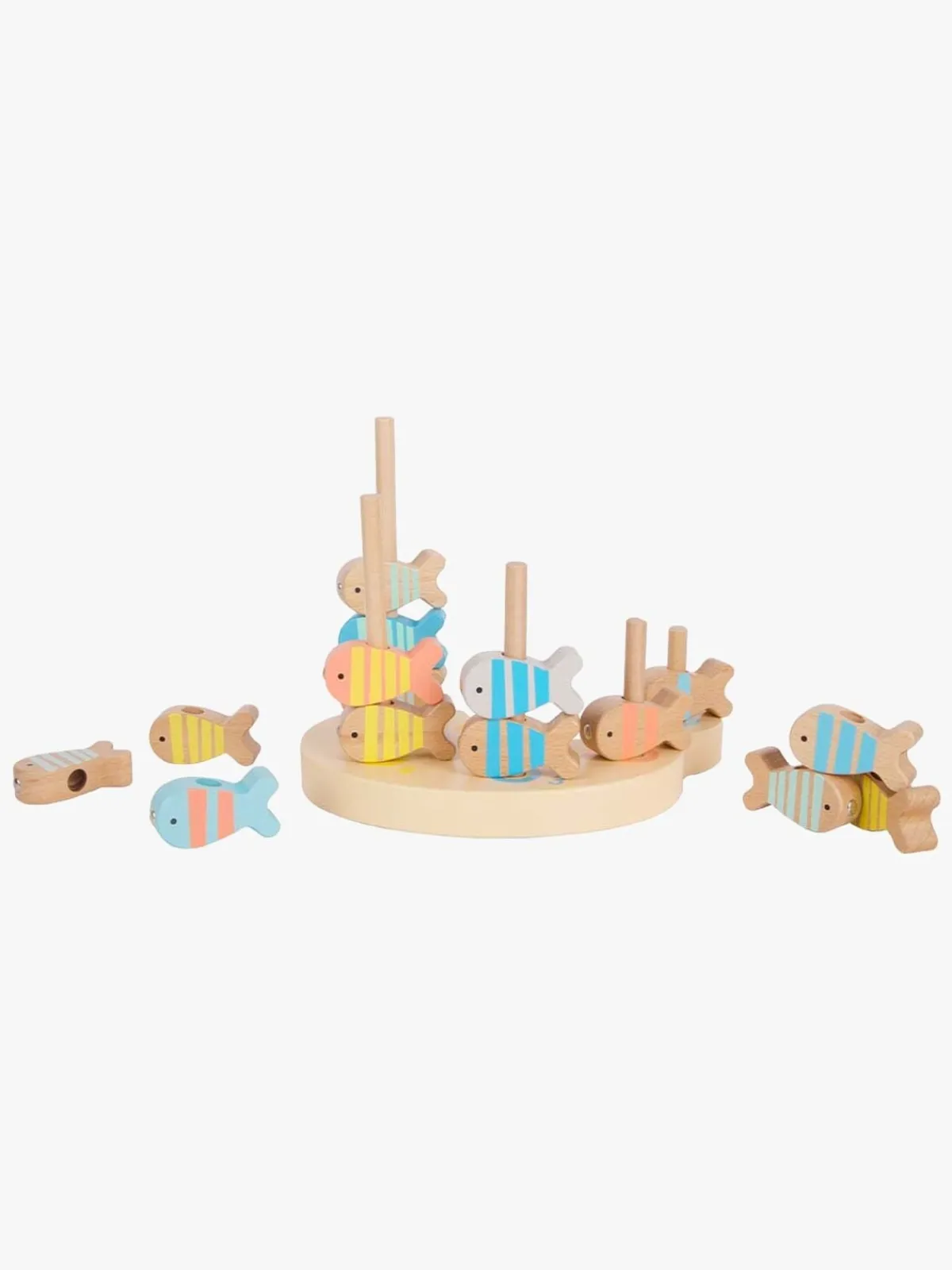– Indeholder: 15 fisk, 2 fiskestænger, 1 fiskedam, 1 stabeltårn, 5 stænger.
