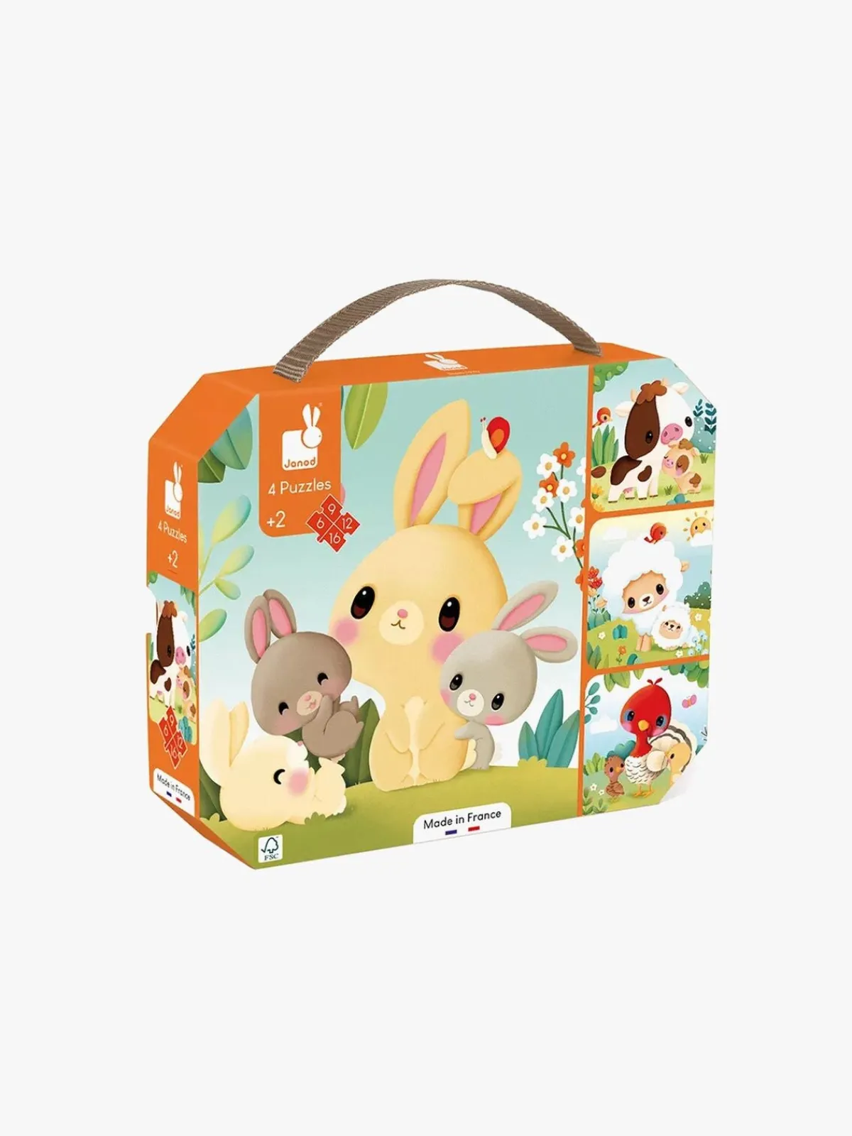 – 4 puslespil, der hhv. består af 6, 9, 12 og 16 brikker.