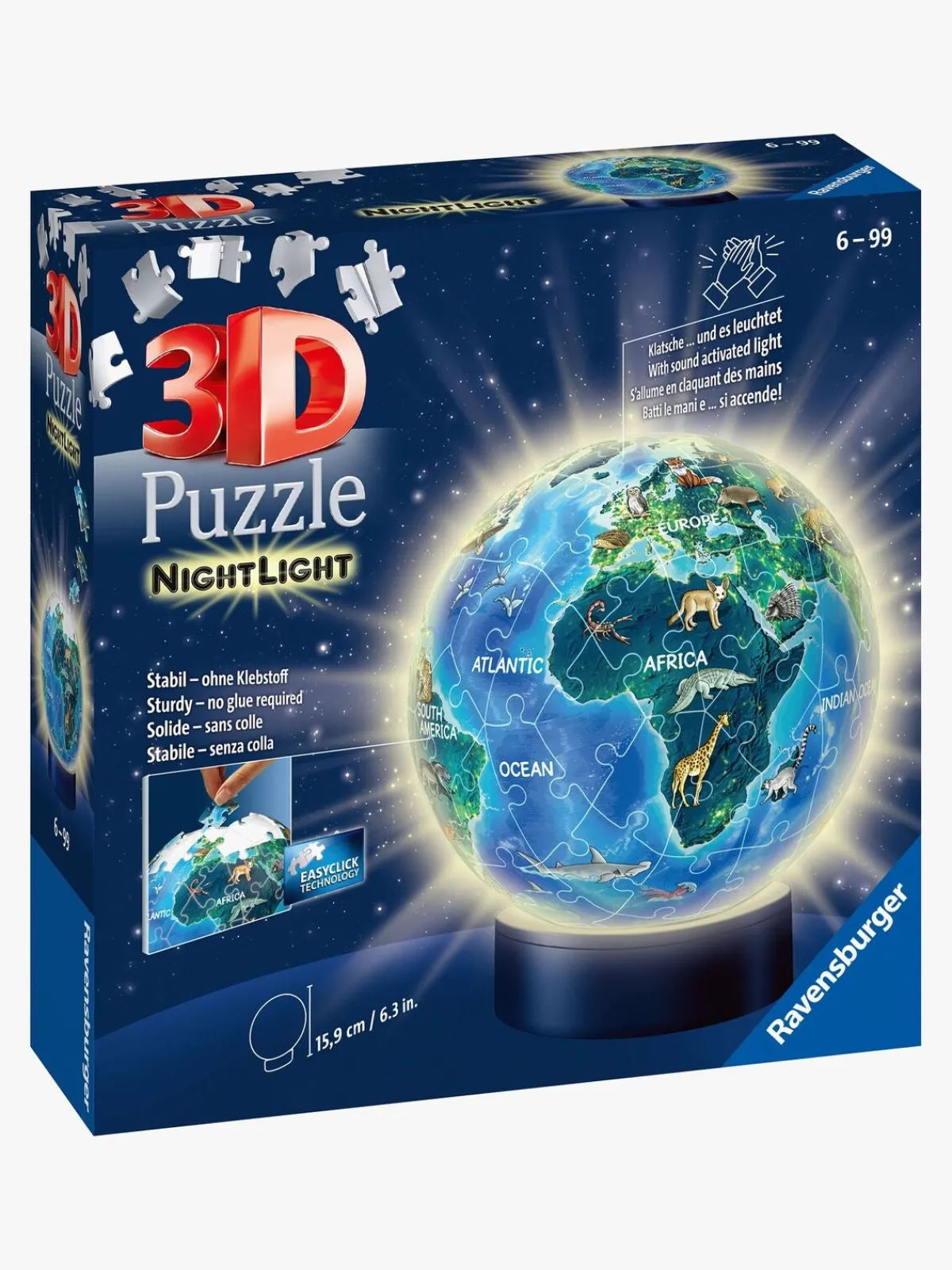 Spil & Puslespil-Ravensburger 3D Puslespil Globus Dyr, Natlampe 72 Brikker