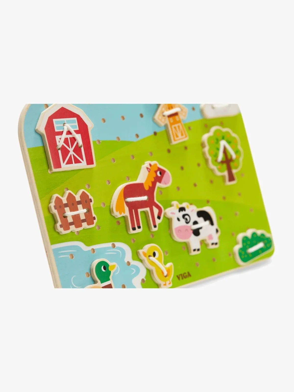 – Placér figurene på brættet og sæt dem fast med snoren.