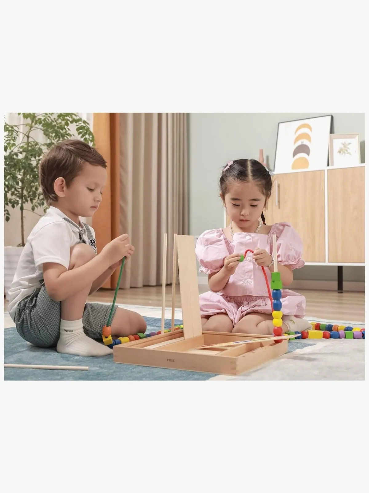 – Indeholder: 1 perleramme, 72 perler, 10 mønsterpaneler, 10 runde pinde, 2 snører.