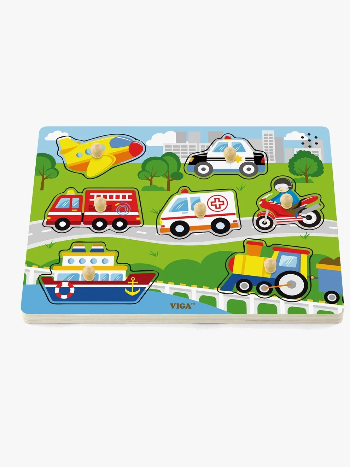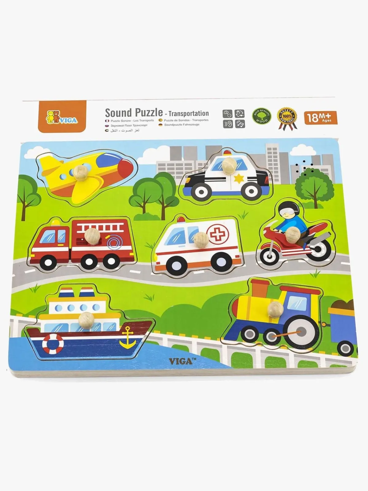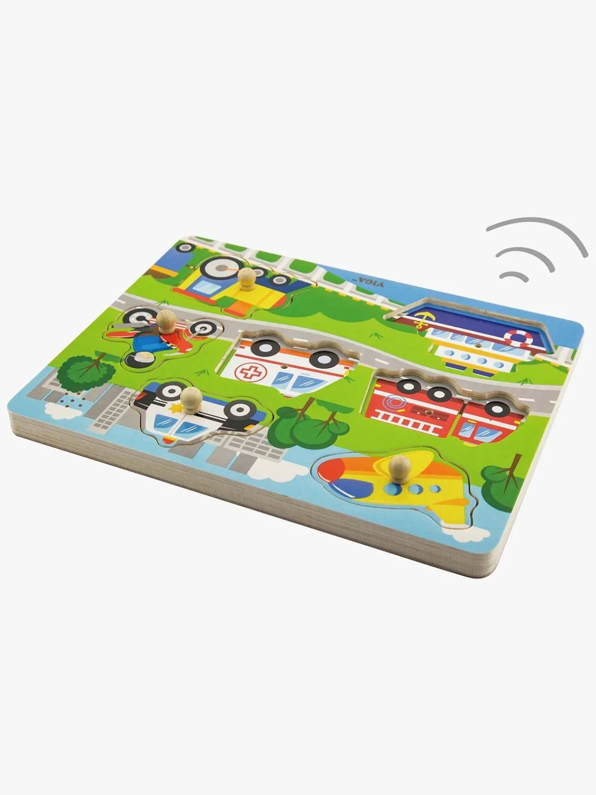 Spil & Puslespil-VIGA Puslespil m. Motorlyde Flerfarvet
