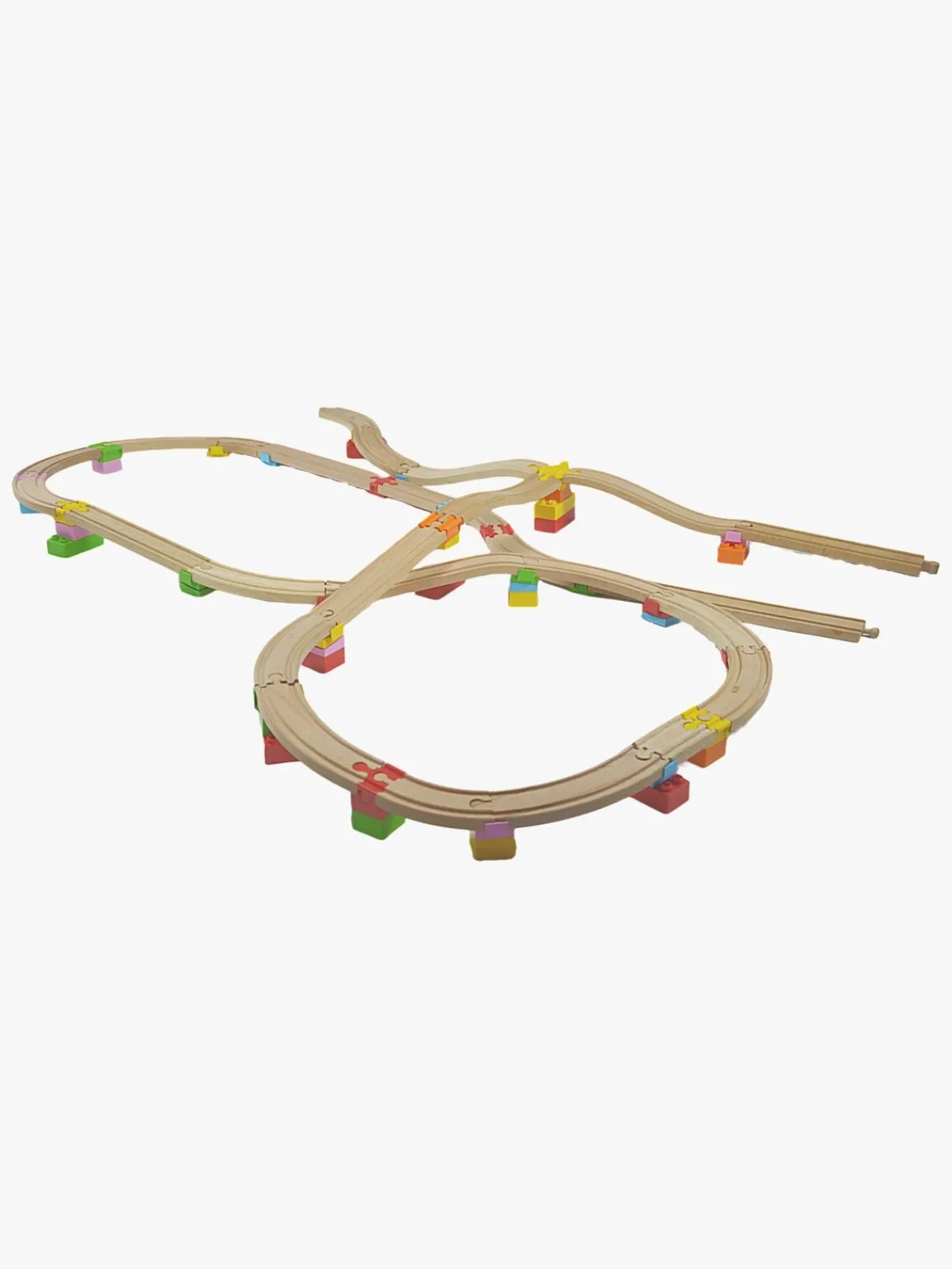 – Kompatibel med andre populære mærker, der laver togbaner og byggeklodser af træ.