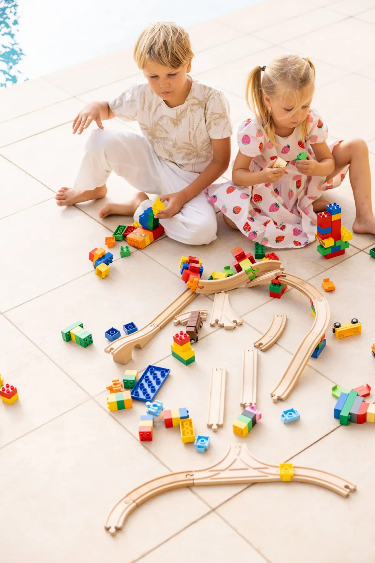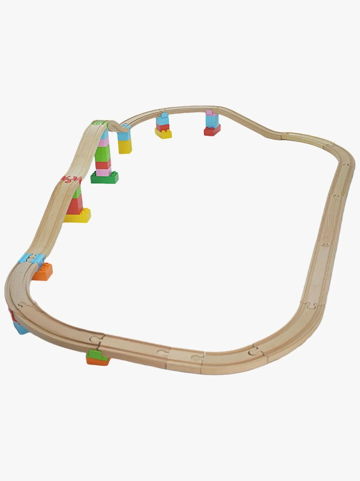 – Kompatibel med andre populære mærker, der laver togbaner og byggeklodser af træ.