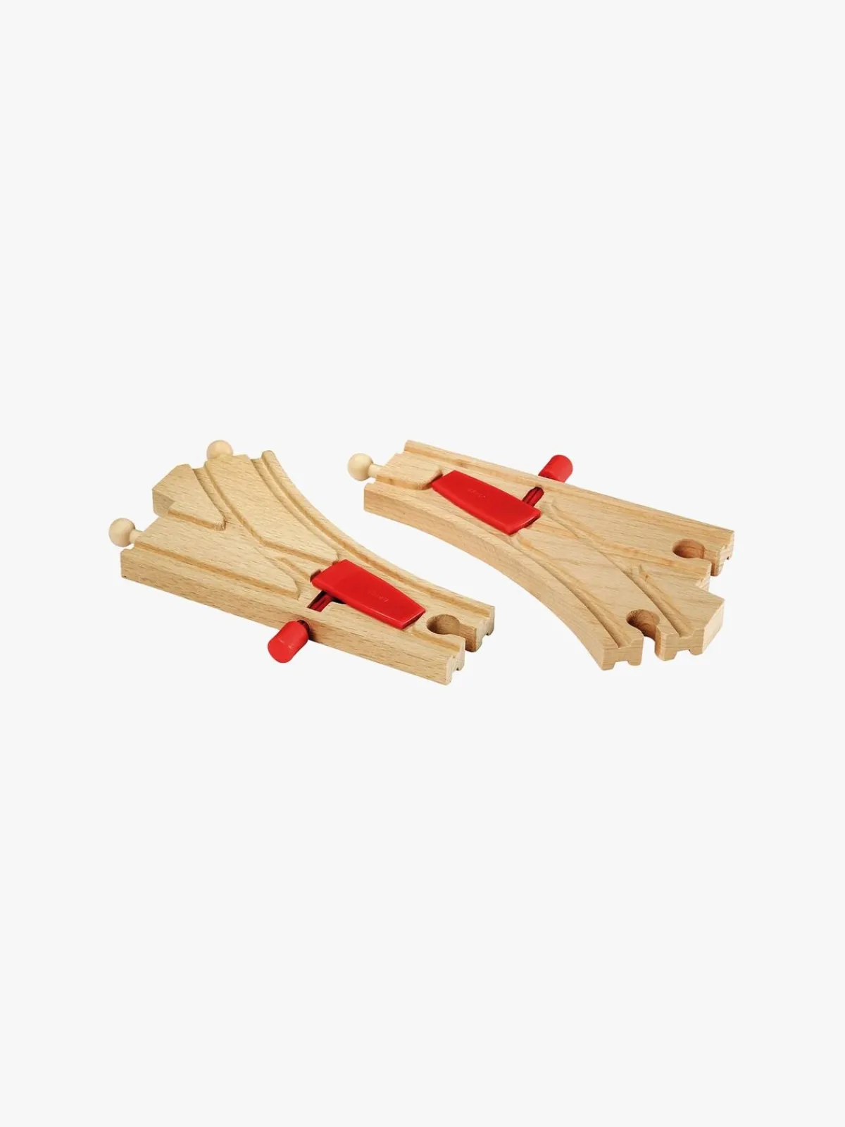 BRIO Mekaniske Sporskift er en 2-pack med ekstradele til din BRIO togbane. Sporskiftene kan vendes så de passer til både højre- og venstresving, som passer godt til batteridrevne lokomotiver.