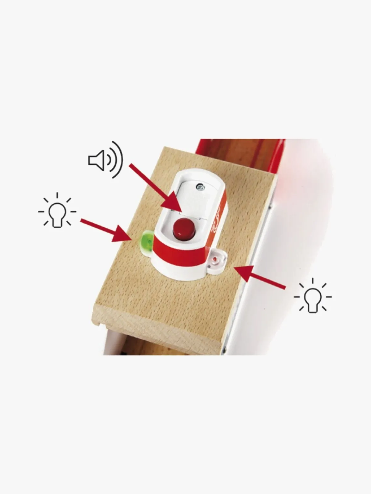 Færgen har lyd og lys, som aktiveres med et enkelt tryk på en knap. Med de to medfølgende af- og påstigningsspor, åbnes færgens port når den lægger til.