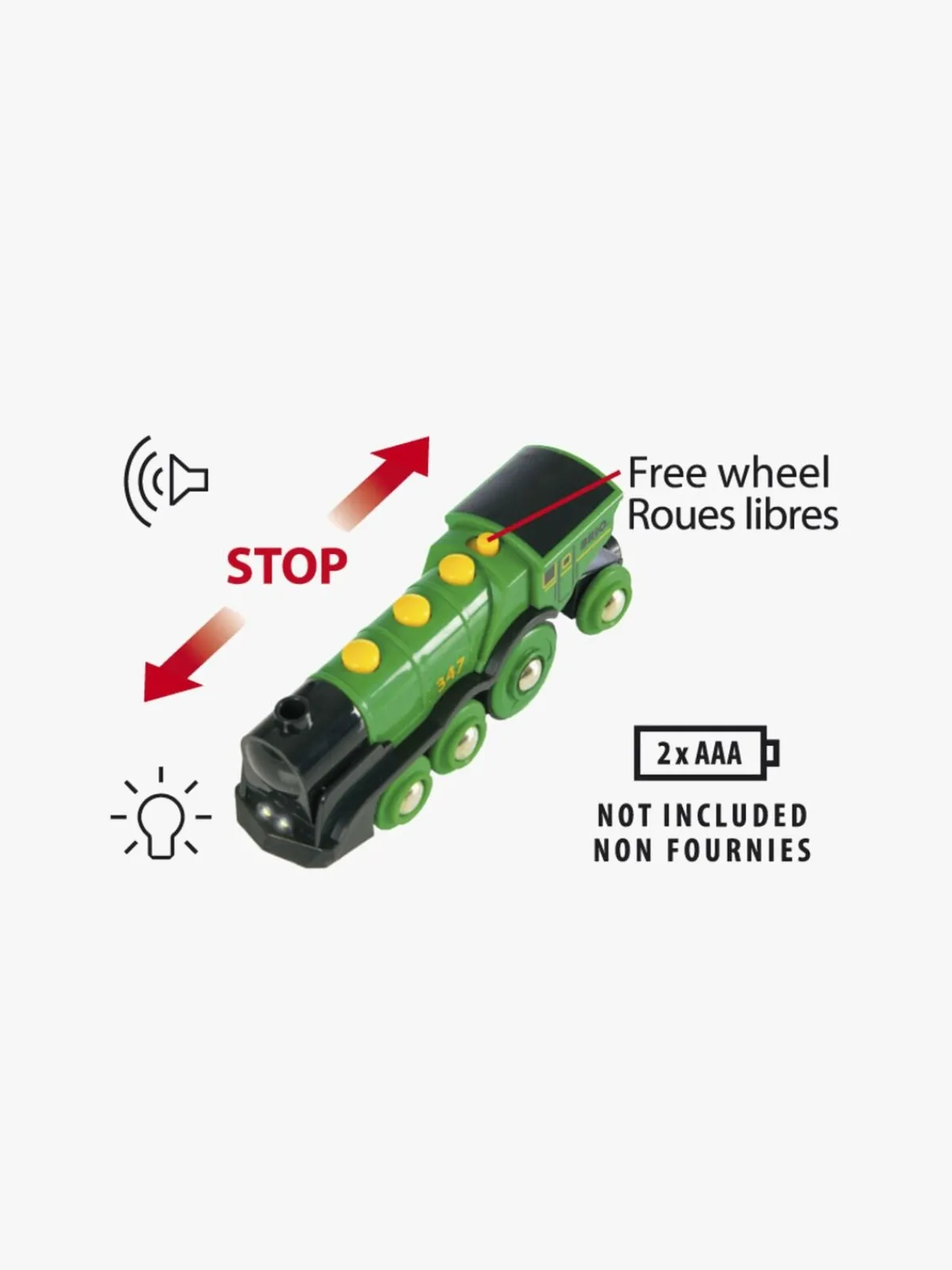 – Toget bruger 2 x AAA-batterier (ikke inkl.).