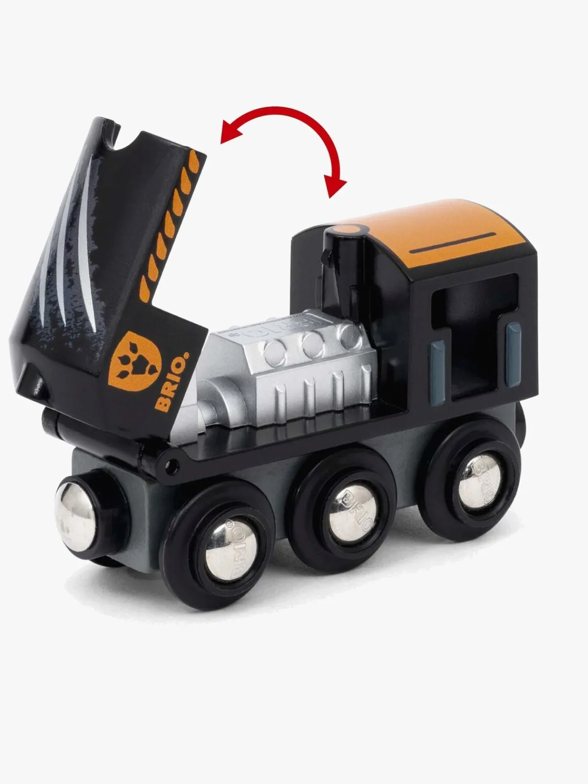 – Indeholder: 1 tog, 1 anhænger, 1 dinosaur, 1 græsstykke, 7 bøjede skinner, 1 togskinne med træ.