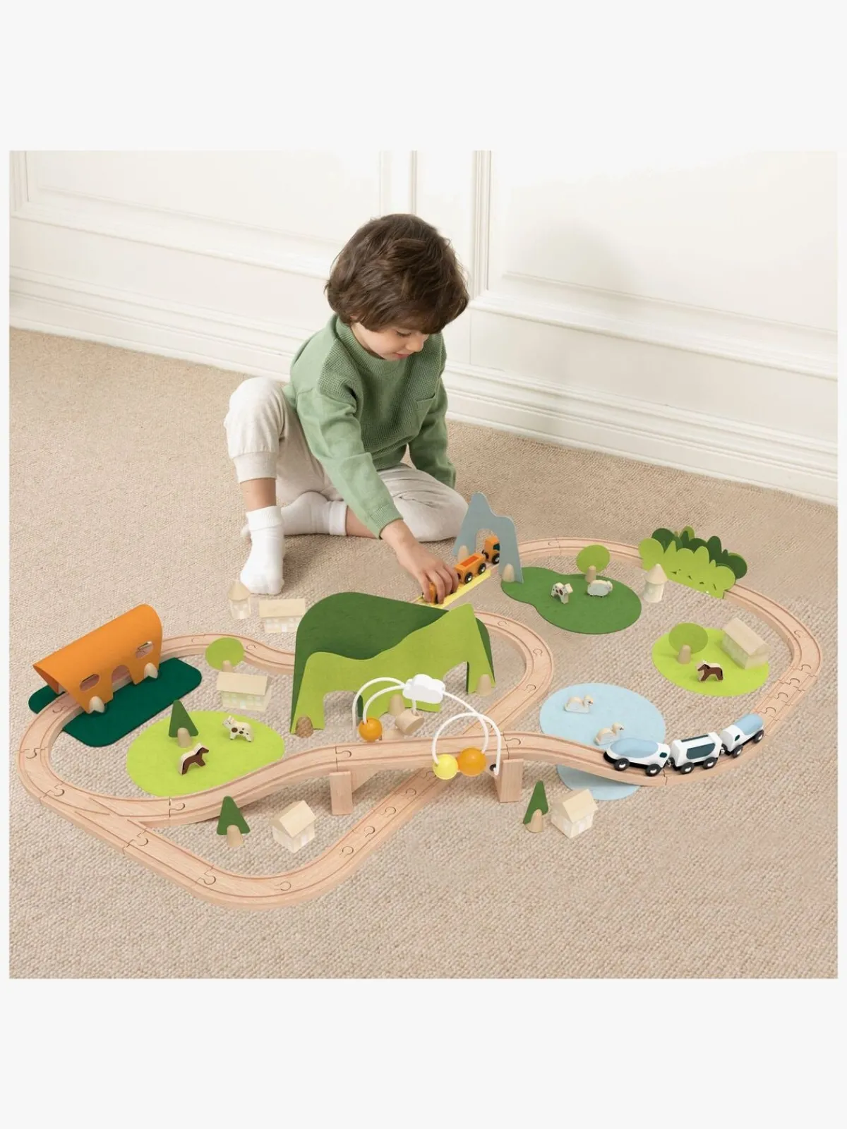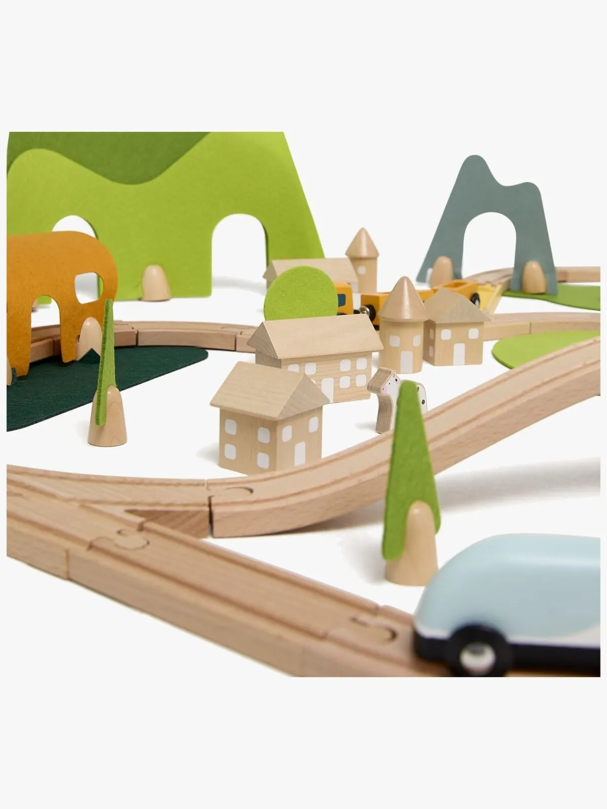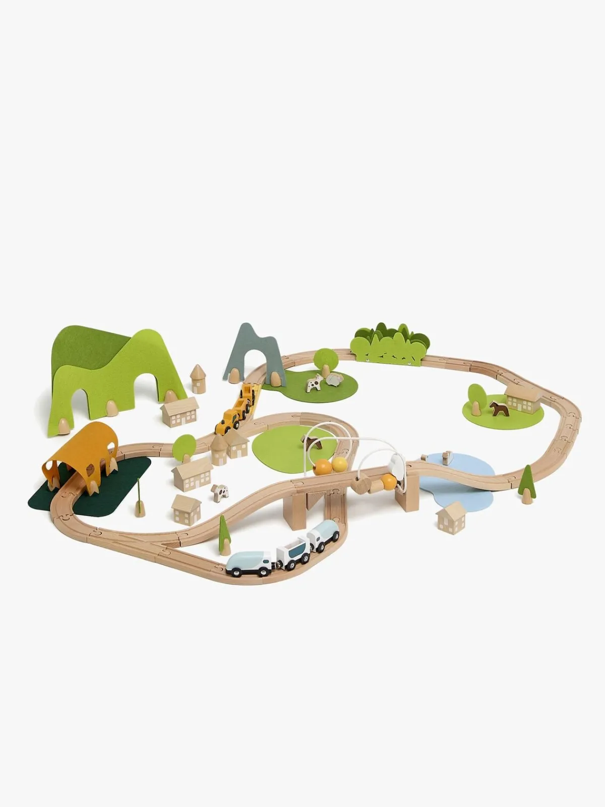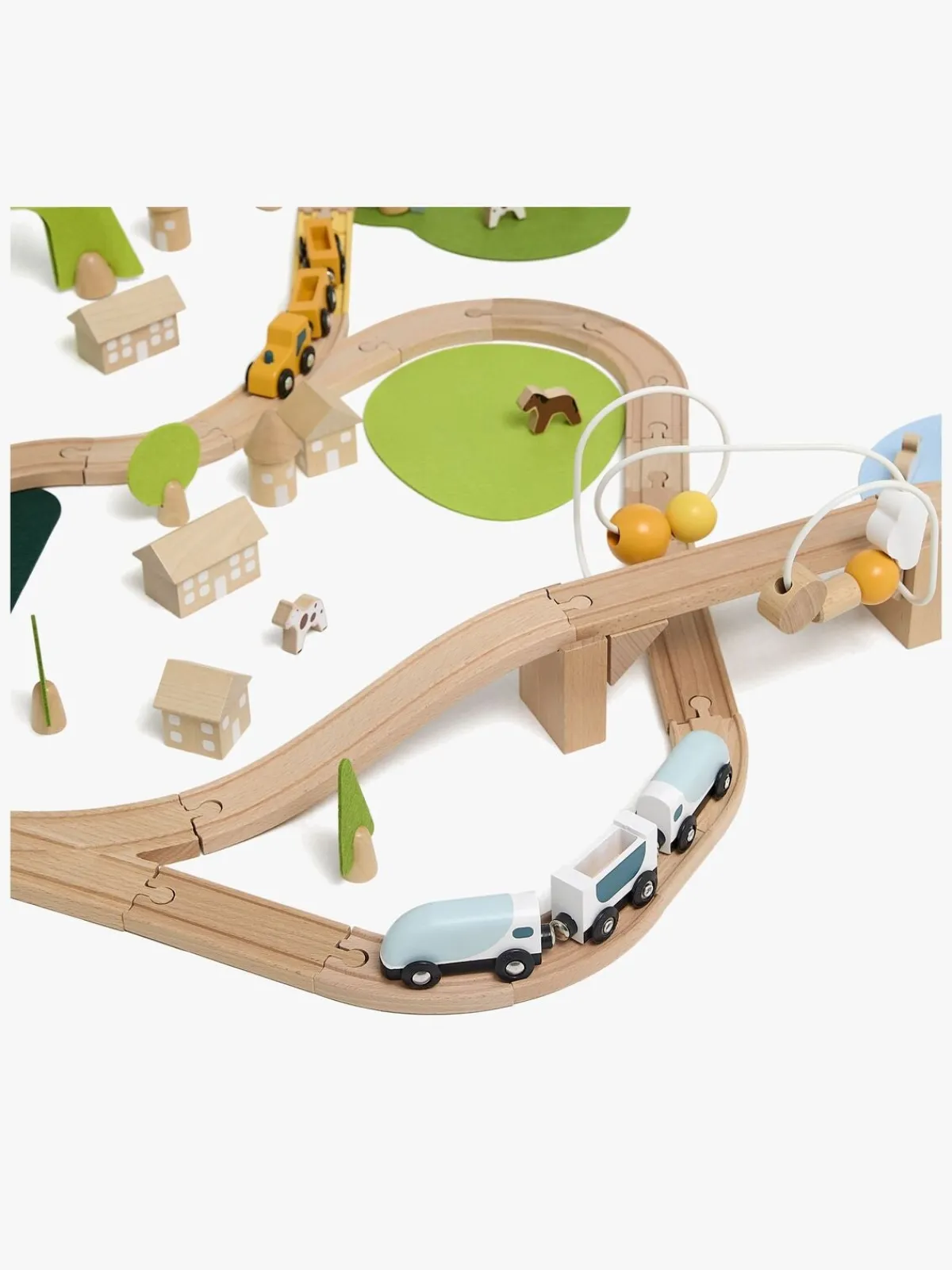 – Indeholder: forskellige skinner, bygninger, biler, lokomotiv og meget mere.