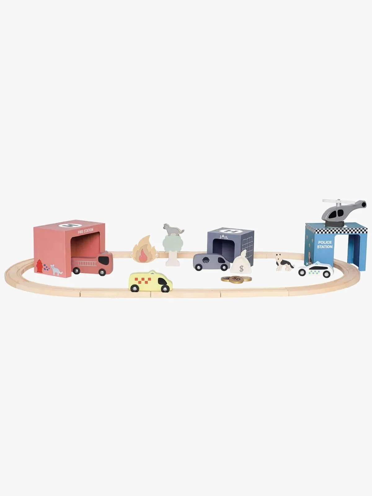 – Indeholder: 15 vejdele, 1 brandbil, 1 ambulance, 1 bil, 1 politibil, 1 helikopter, 1 brandstation, 1 politistation, 1 fængsel, 2 træer, 1 kat, 1 brand, 3 mønter.