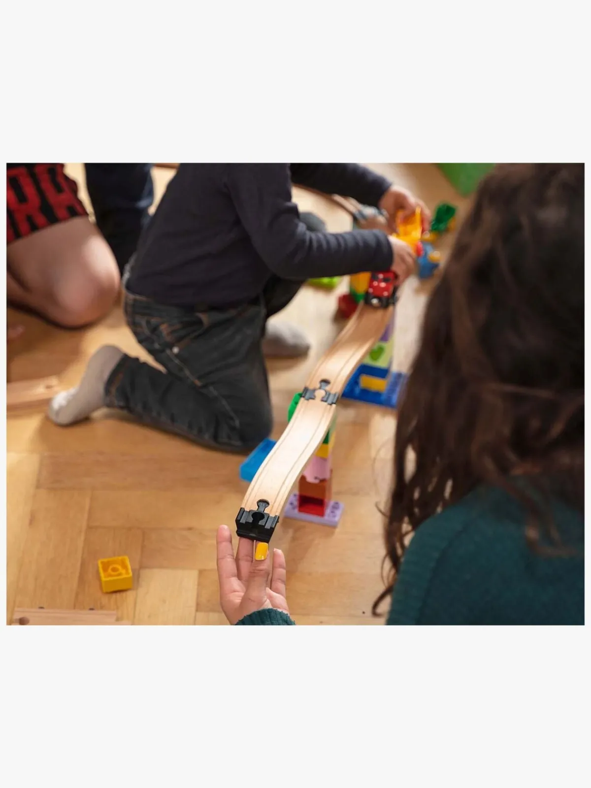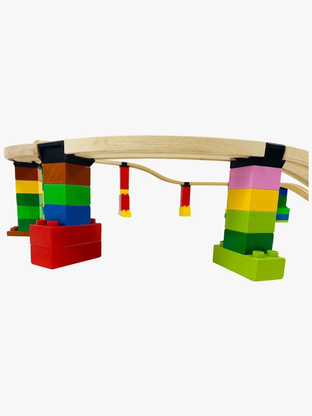 – OBS: Træskinnerne og byggeklodserne medfølger ikke.