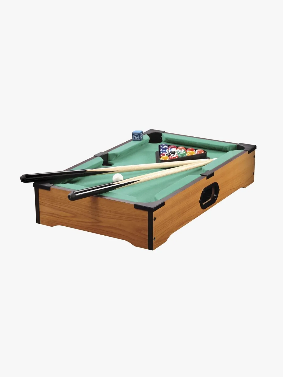 – Inkluderer: billardbord, 2 spillekøer, kugler, kugletrekant, farvekridt.