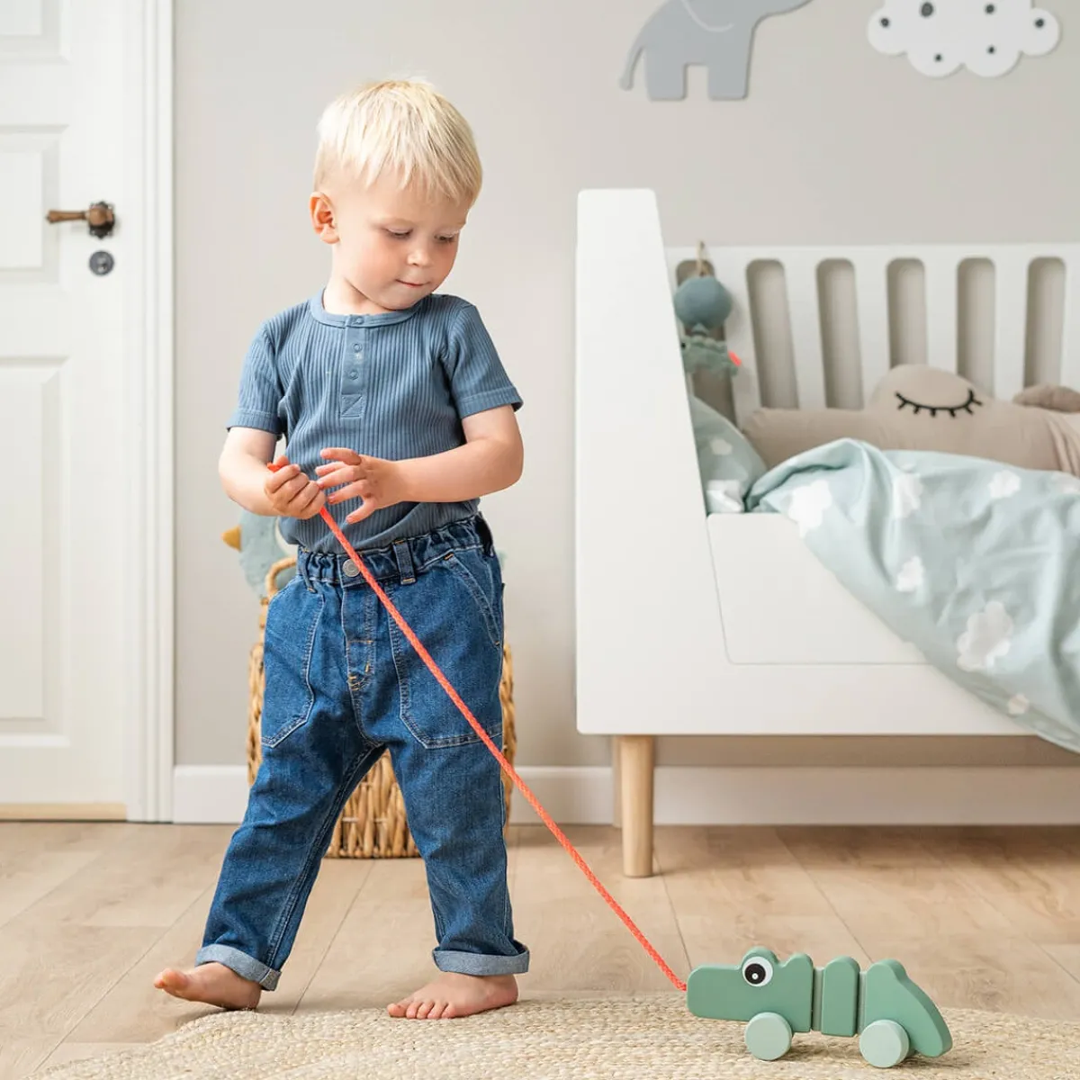 – Træk i snoren for at få legetøjet til at bevæge sig.