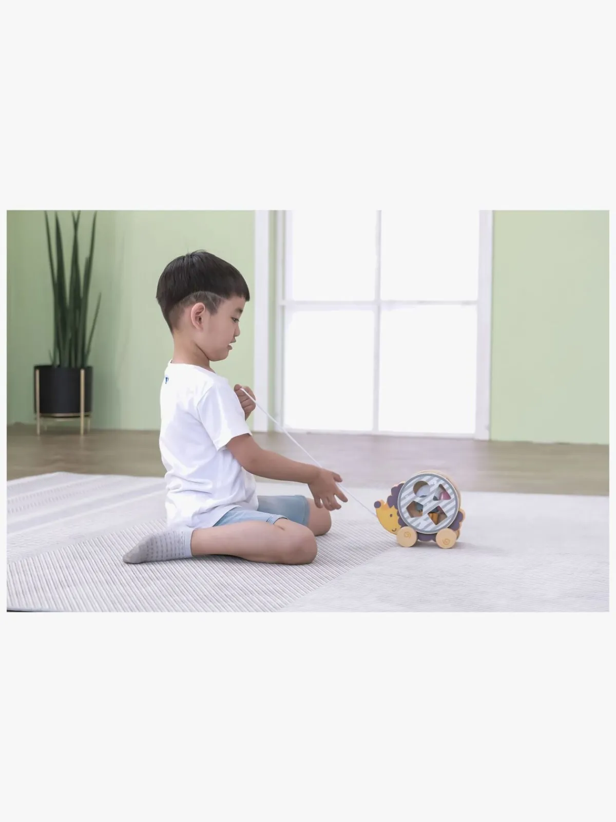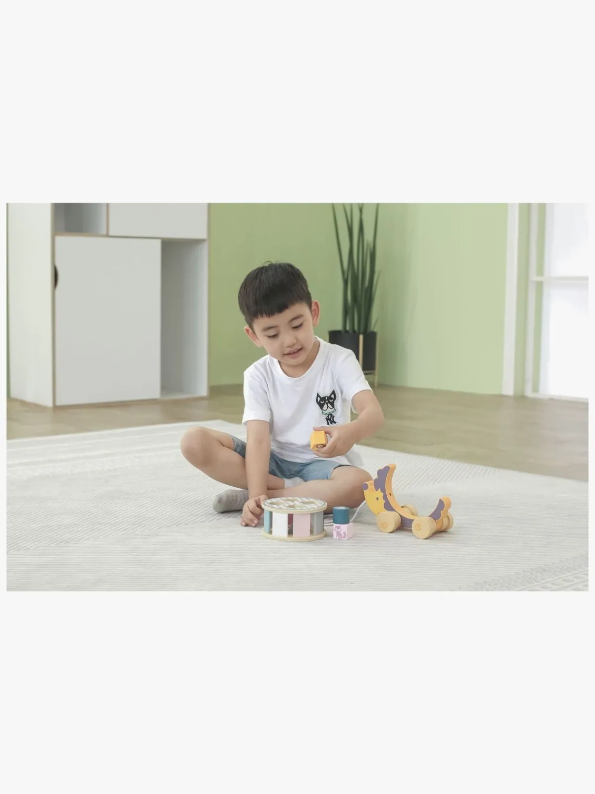 – Indeholder: 1 træklegetøj, 1 puttekasse, 4 klodser.