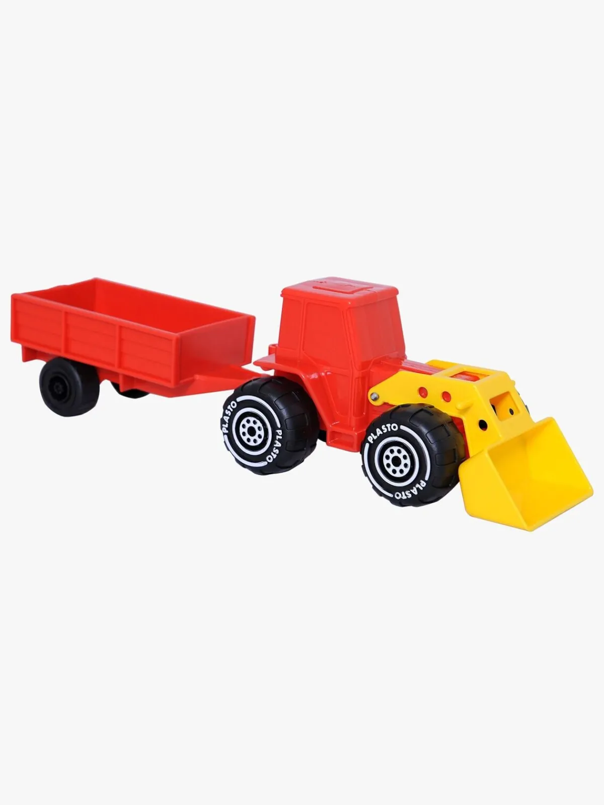 Udelegetøj-Plasto Traktor m. Frontlæsser & Anhængervogn