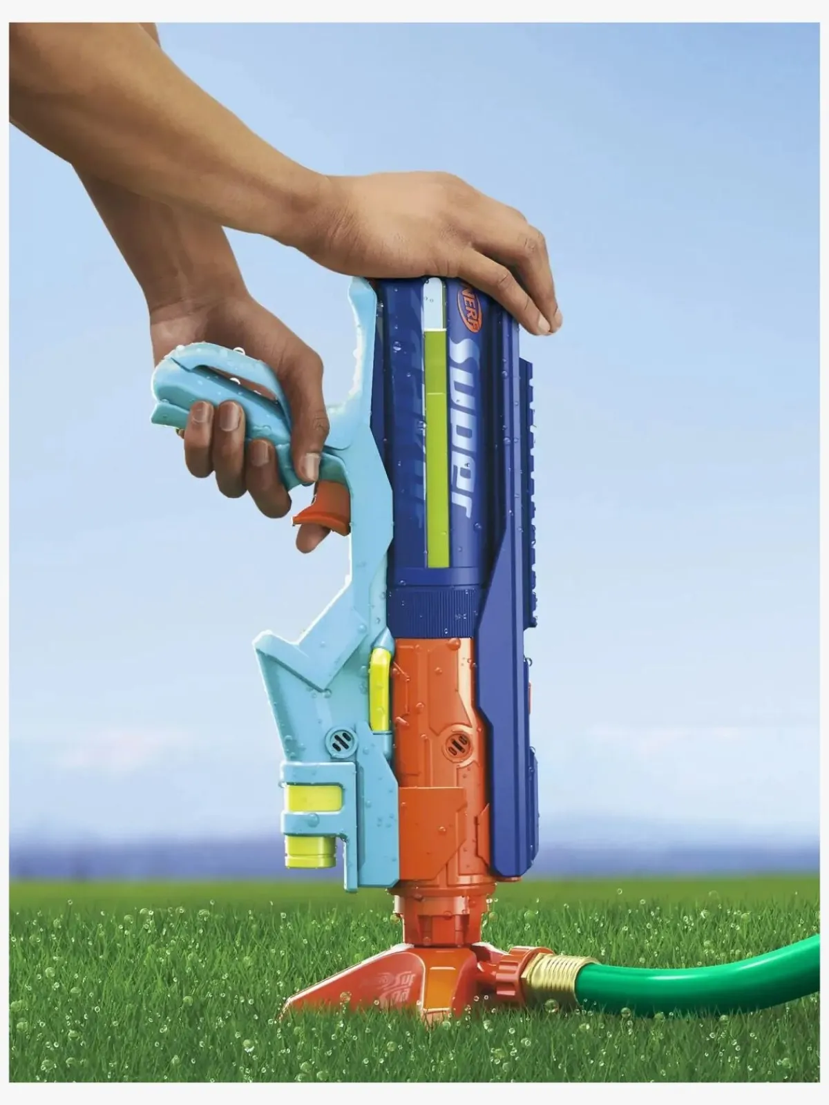 – Tilslut en slange til påfyldningsstationen, og placer blasteren på stationen for at fylde den.