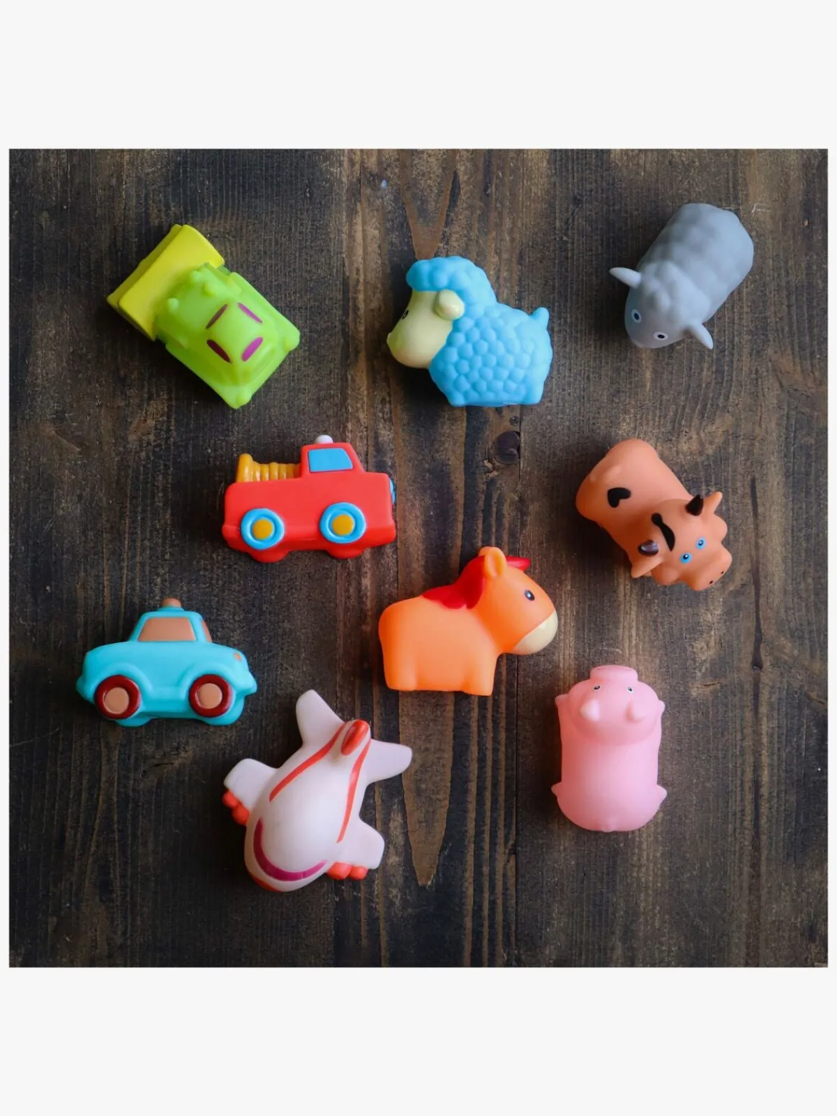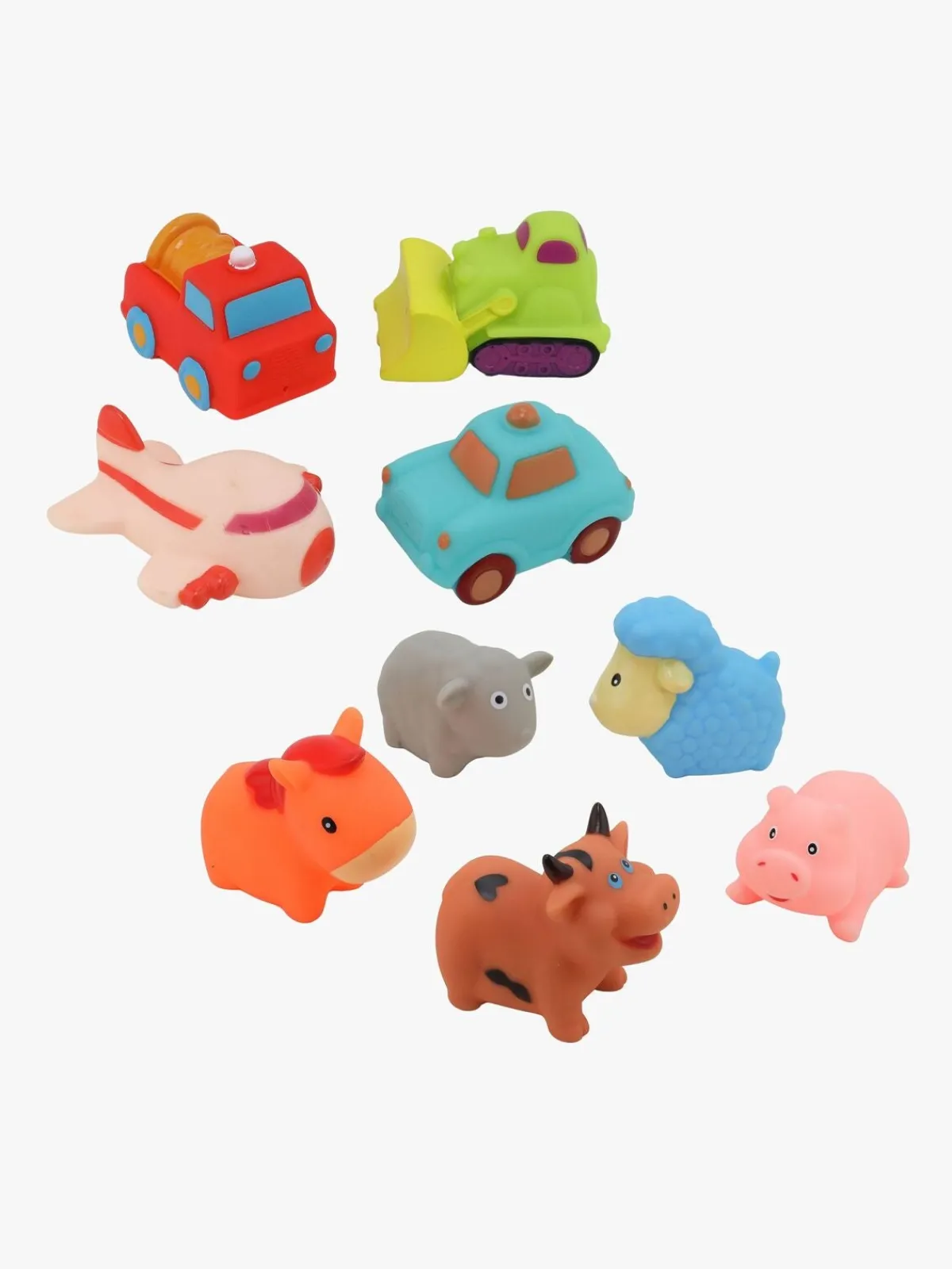 – Indeholder: 1 hest, 1 gris, 1 får, 1 lam, 1 ko, 1 fly, 1 taxa, 1 cementlastbil, 1 hjullæsser.