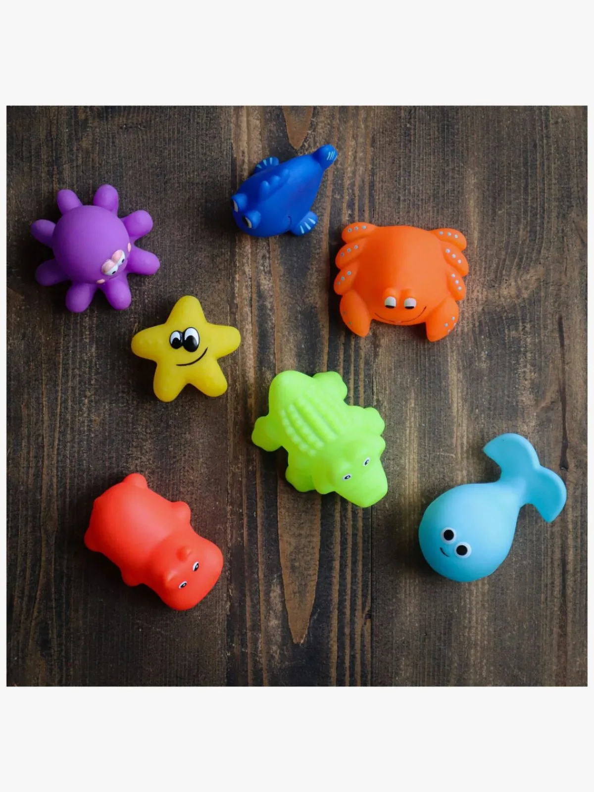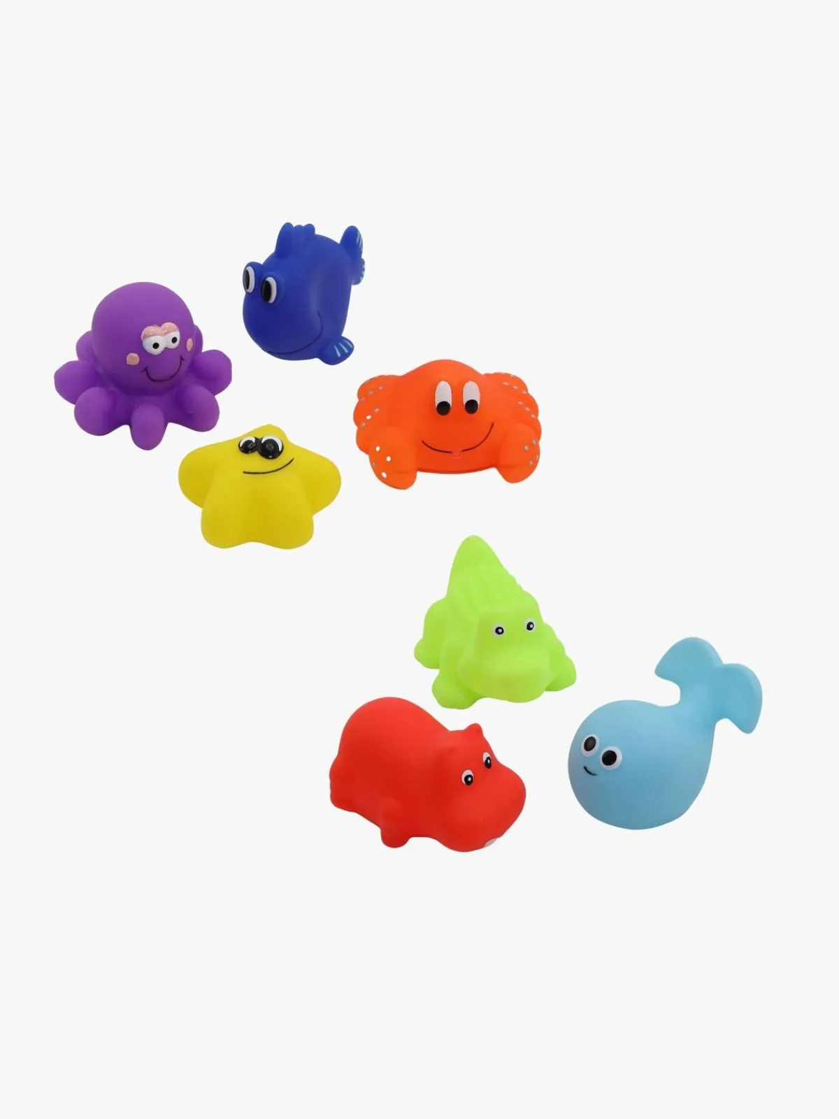 – Indeholder: 1 fisk, 1 hval, 1 blæksprutte, 1 søstjerne, 1 krabbe, 1 krokodille, 1 flodhest.