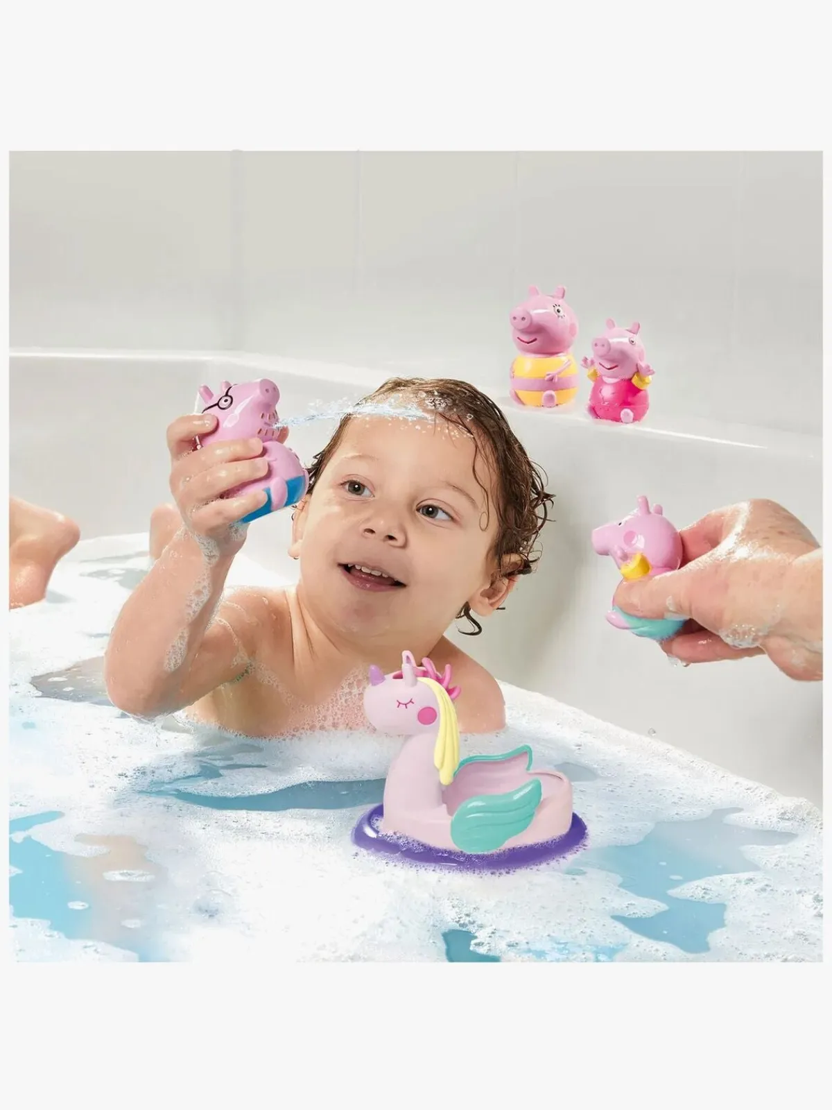 – Sæt Gurli Gris i flydelegetøjet, fyld enhjørningen med vand og giv Gurli et forfriskende bad fra enhjørningens base eller tip enhjørningen fremad for forsigtigt at dryppe vand ud gennem munden.
