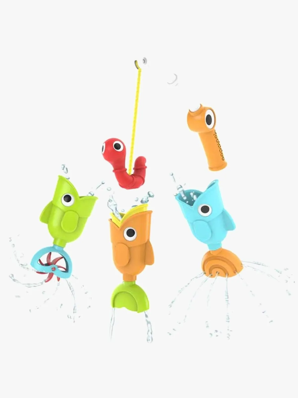– Den grønne fisk har en propel, den blå har en sprinkler, og den orange har to stråler samt en minifisk, der dukker op ved fangst.